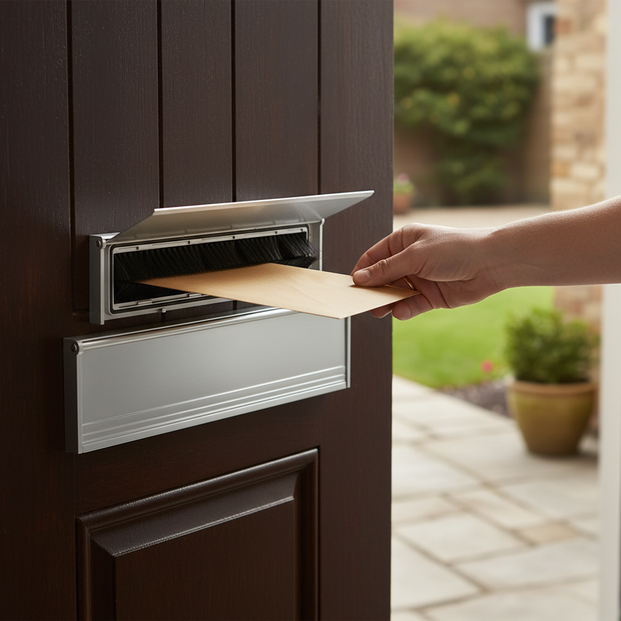 Premium 12-Inch Flushback Letterplate Cover with Draught Excluder - Durable Aluminium Construction for Energy Efficiency